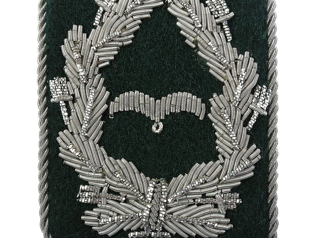 Петлицы Майора авиаполевых дивизий Люфтваффе периода Второй мировой войны, Вышиты металлизированной посеребренной нитью на темно-зеленной суконной основе.