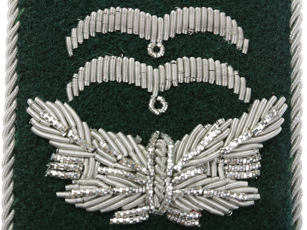 Петлицы Обер-Лейтенанта авиаполевых дивизий Люфтваффе периода Второй мировой войны, Вышиты металлизированной посеребренной нитью на темно-зеленной суконной основе.