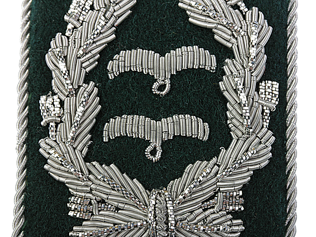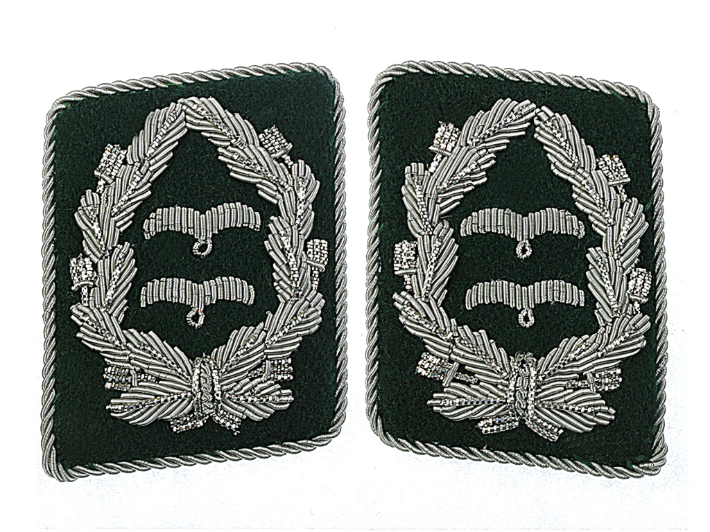 Петлицы Оберстлейтенант авиаполевых дивизий Люфтваффе периода Второй мировой войны, Вышиты металлизированной посеребренной нитью на темно-зеленной суконной основе.