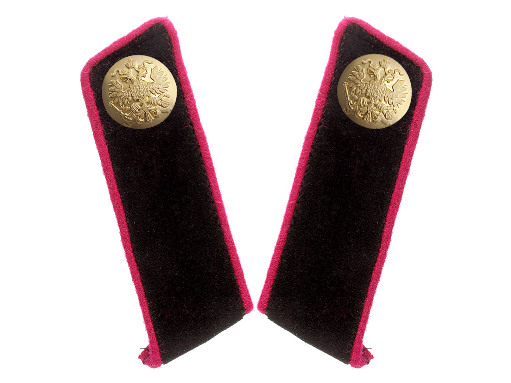 Качественная копия петлиц на шинель унтер-офицера Лейб-гвардии Стрелкового артиллерийского дивизиона. Черное бархатное поле, малиновый кант, латунные пуговицы с изображением Государственного герба на пушках.