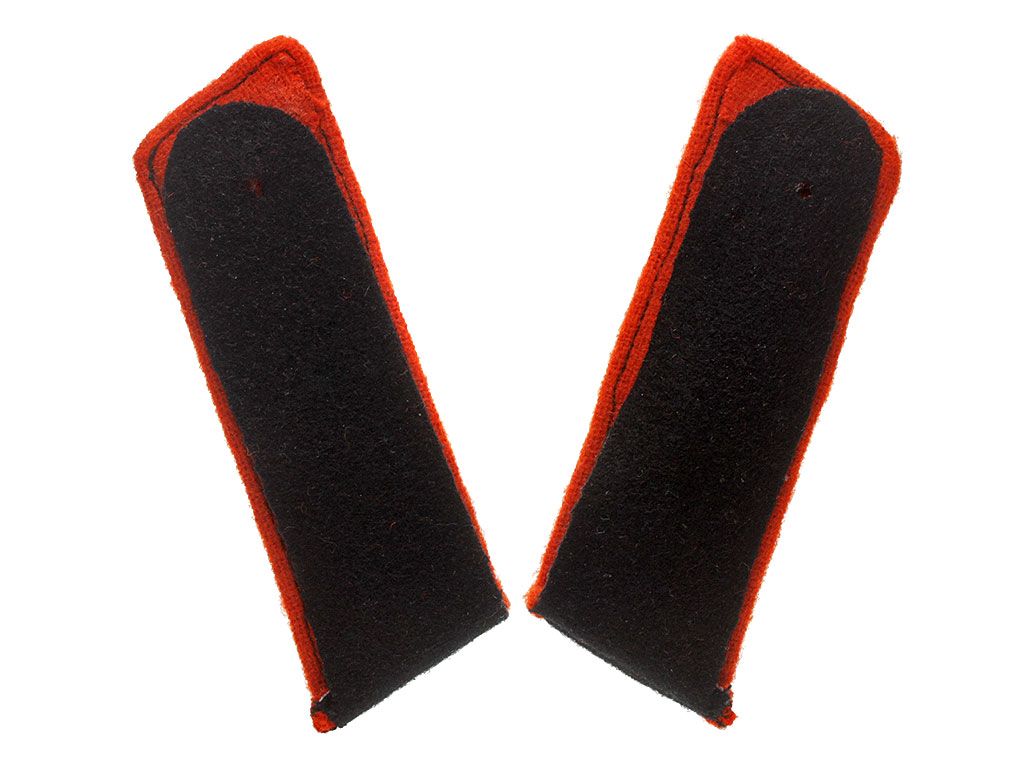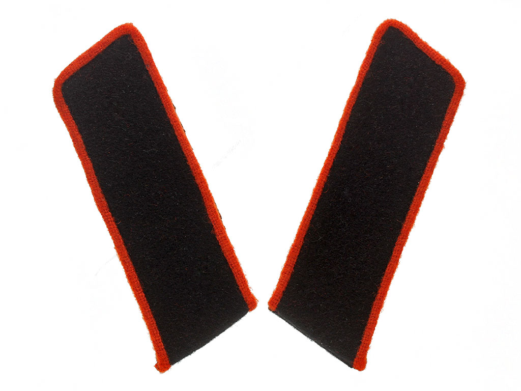 Качественная копия петлиц на шинель рядового состава Отдельного батальона для охраны ставки Верховного главнокомандующего. Черное суконное поле, красный кант.