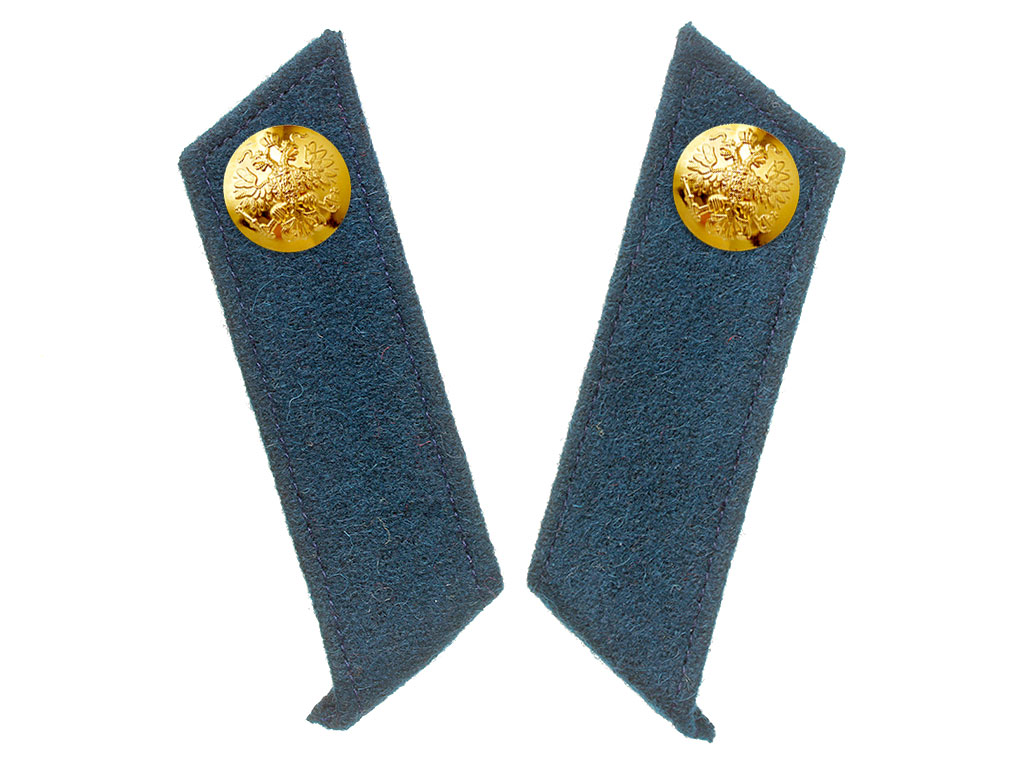 Качественная копия петлиц на шинель офицера 4-ых полков армейской пехоты. Темно-зеленое суконное поле, темно-зеленый кант, позолоченные пуговицы с изображением Государственного герба.