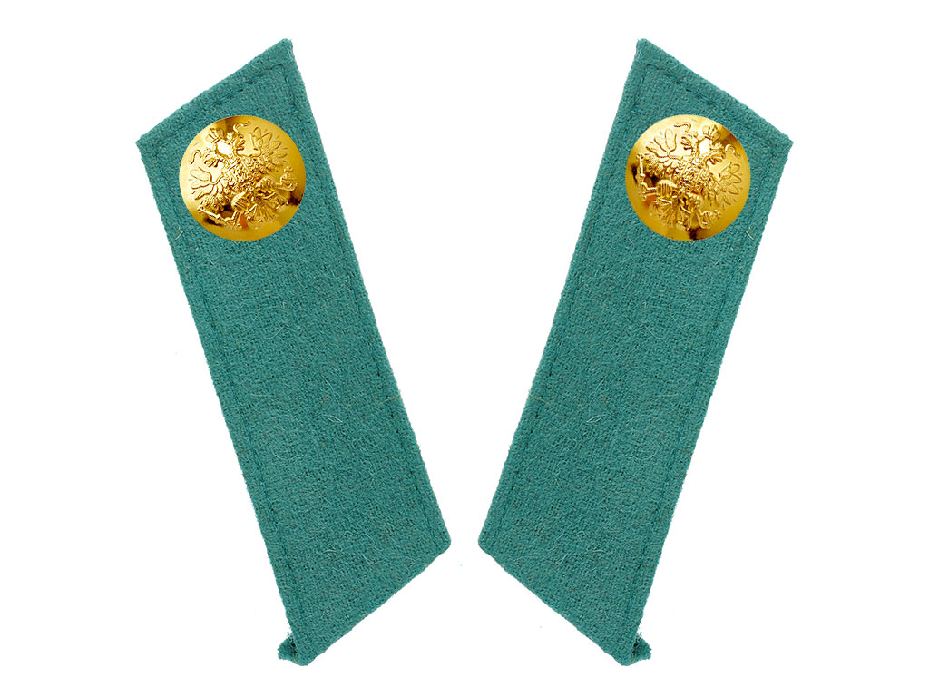 Качественная копия петлиц на шинель офицера морских частей Отдельного корпуса пограничной стражи. Светло-зеленое суконное поле, светло-зеленый кант, золоченые пуговицы с изображением Государственного герба.