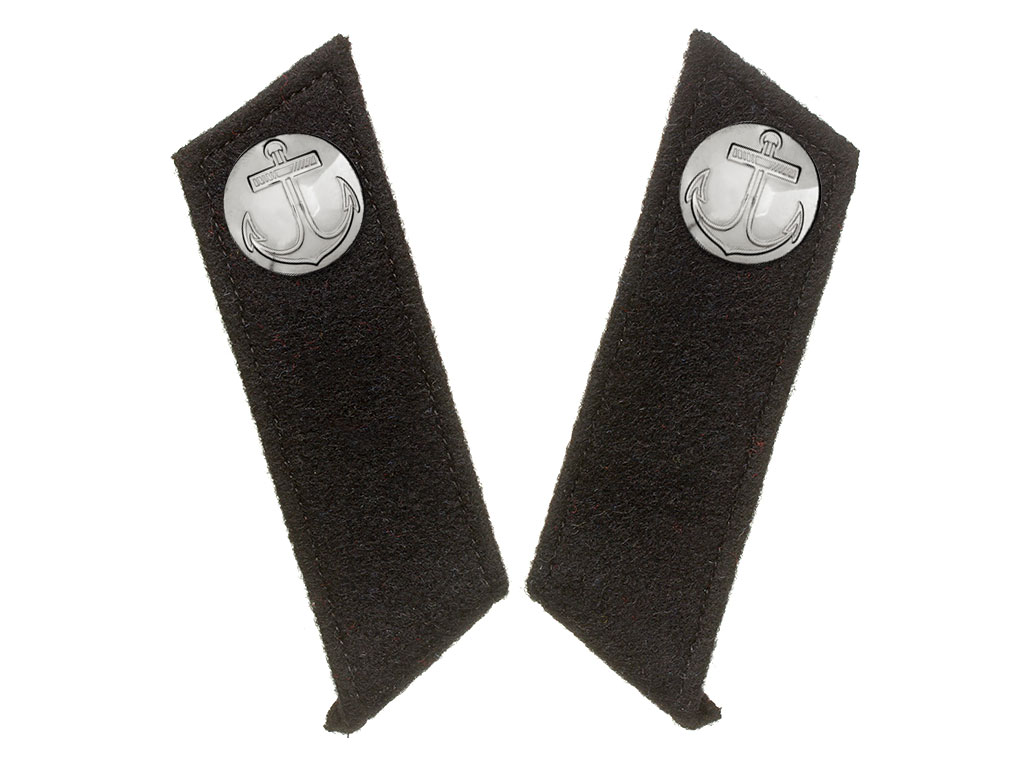Качественная копия петлиц на шинель офицера морских строительных частей и морской администрации Российского Императорского флота (до 1904 года). Черное суконное поле, черный кант, посеребренные пуговицы с изображением якоря.