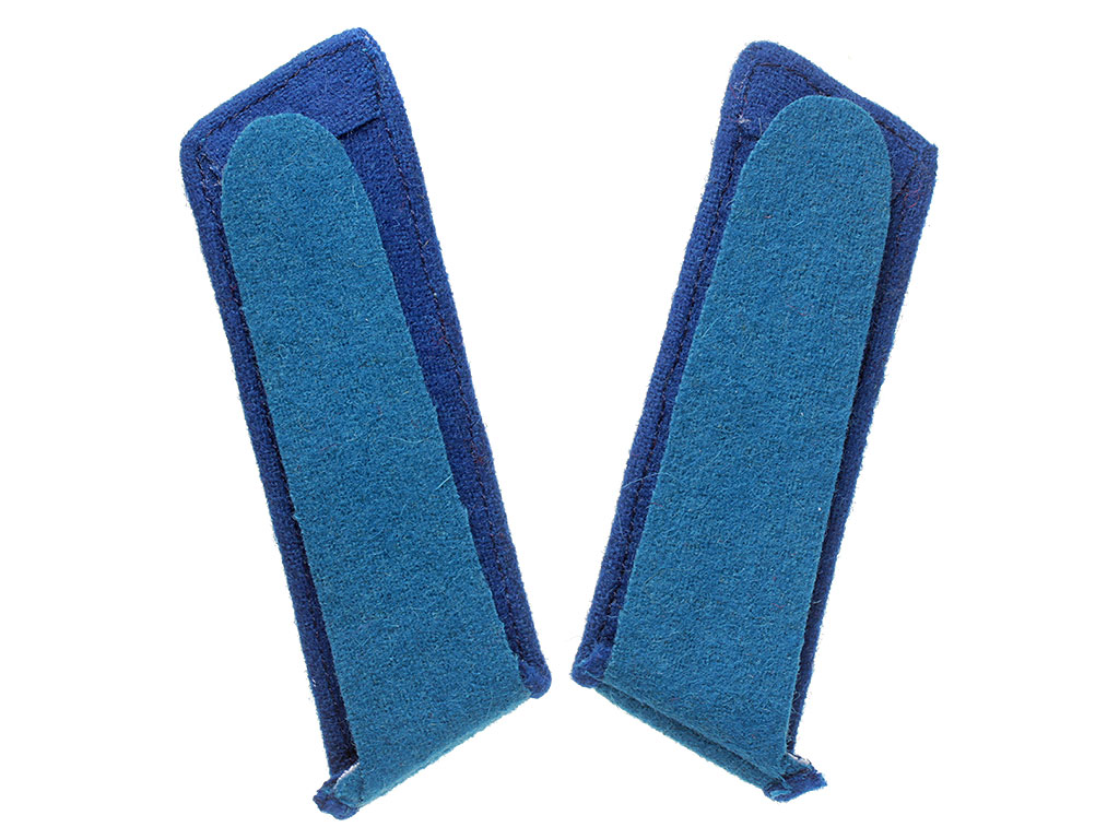 Качественная копия петлиц на шинель унтер-офицера 14-го уланского полка. Светло-синее суконное поле, темно-синий кант, белые пуговицы с изображением Государственного герба.
