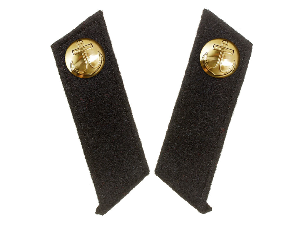 Качественная копия петлиц на шинель унтер-офицера Российского Императорского флота (до 1904 года). Черное суконное поле, черный кант, латунные пуговицы с изображением якоря.
