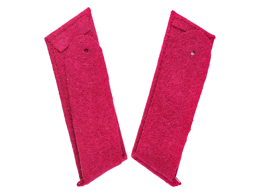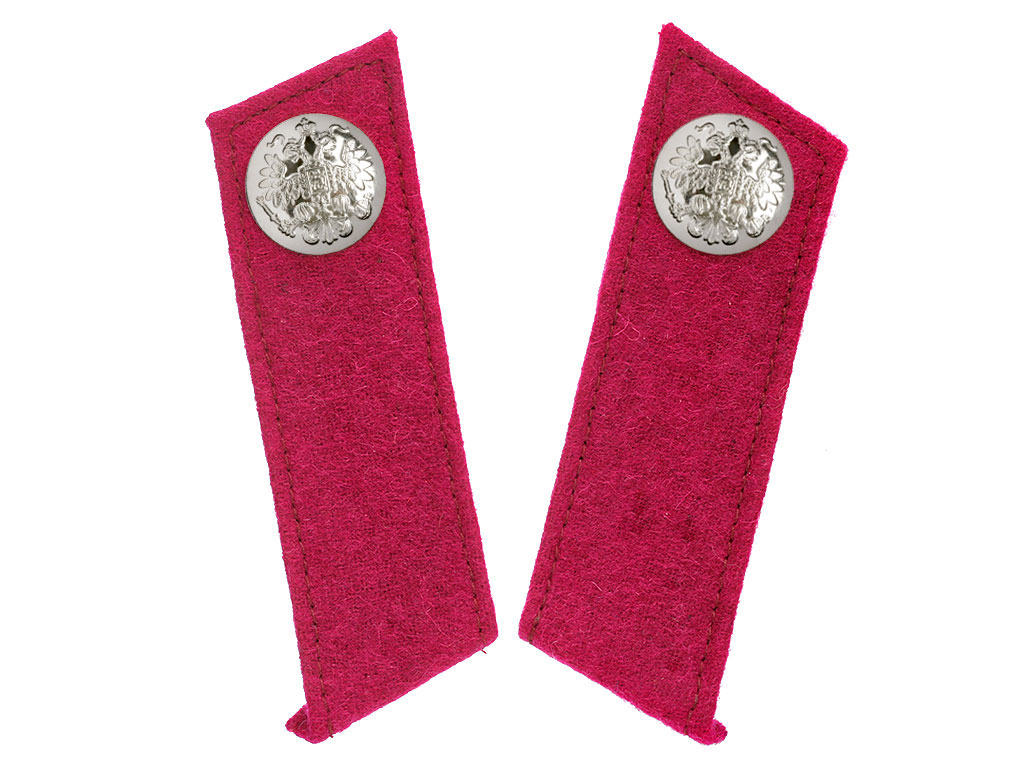 Качественная копия петлиц на шинель унтер-офицера Уральского казачьего войска. Малиновое суконное поле, малиновый кант, посеребренные пуговицы с изображением Государственного герба.