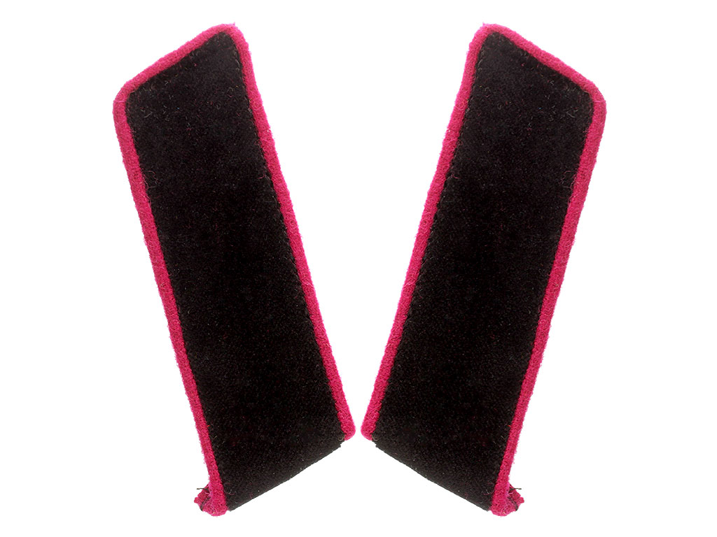 Качественная копия петлиц на шинель рядового Лейб-гвардии Стрелкового артиллерийского дивизиона. Черное бархатное поле, малиновый кант.