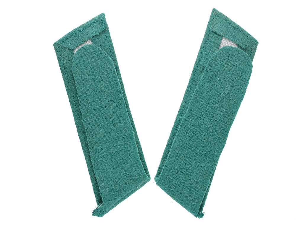 Качественная копия петлиц на шинель рядового морских частей Отдельного корпуса пограничной стражи. Светло-зеленое суконное поле, светло-зеленый кант.