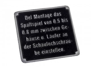Табличка Del Montage das Spaltspiel von 0,5 bis 0,8 mm zwischen Gehause u. Laufer, на водяную помпу для Т-4. Г...