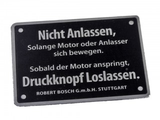 Алюминиевая табличка Fuer Schwunngkraftanlasser! NICHT ANLASSEN, solange Motor sich bewegt! Для танков Т3 и ST...