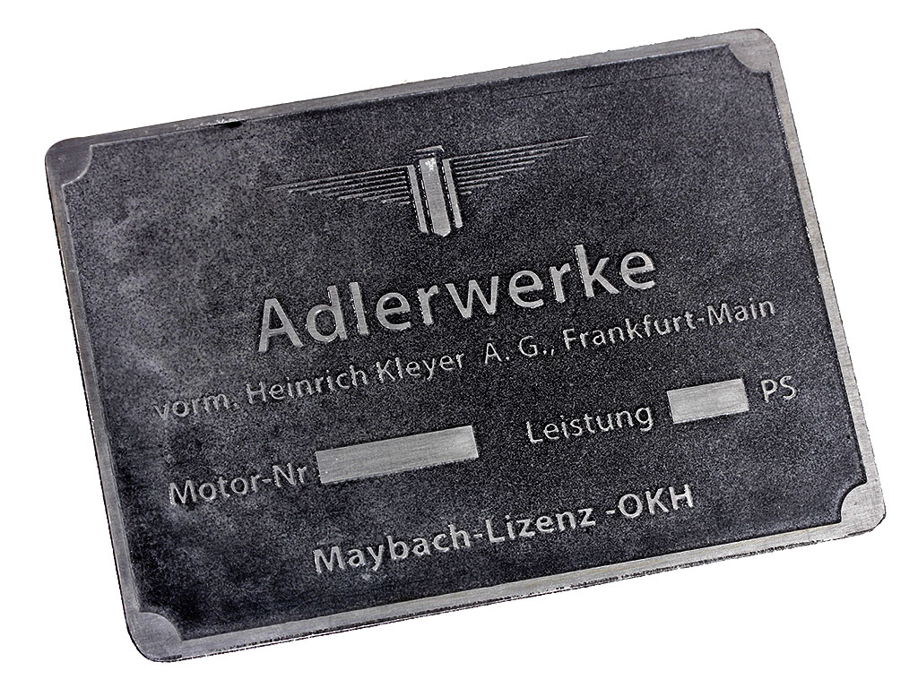 Табличка ADLERWERKE Maybach - Lizenz - OKH для машин производства Adler. Германия, копия. Состаренный вид.