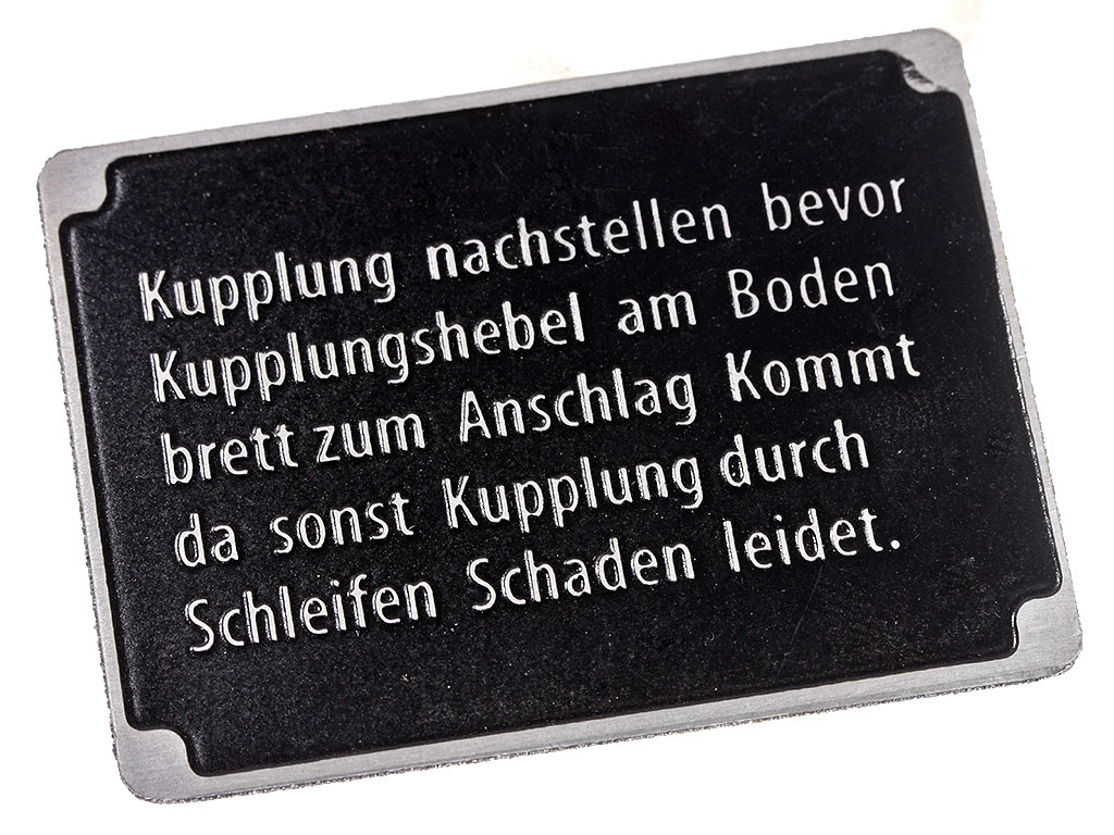 Табличка Kupplung nachstellen bevor Kupplungshebel для регулировки сцепления на 8ми-тонные тягачи. Германия, копия.