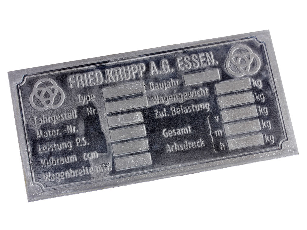 Табличка FRIED.KRUPP A.G. ESSEN. для военной техники КРУПП. Германия, копия. (состаренный вид)