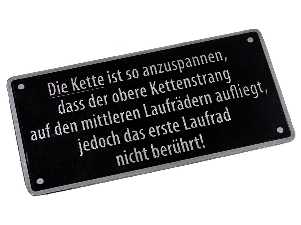 |Табличка узкая ранняя на крыло броневиков и тягачей, Hanomag / Demag Die Kette is so anzuspannen... Sd.Kfz. 251 и sd.kfz 250. Германия, копия