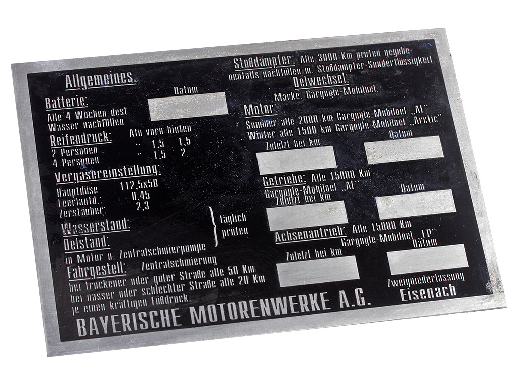 Табличка на военную технику BMW. Германия, копия. Состаренный вид.