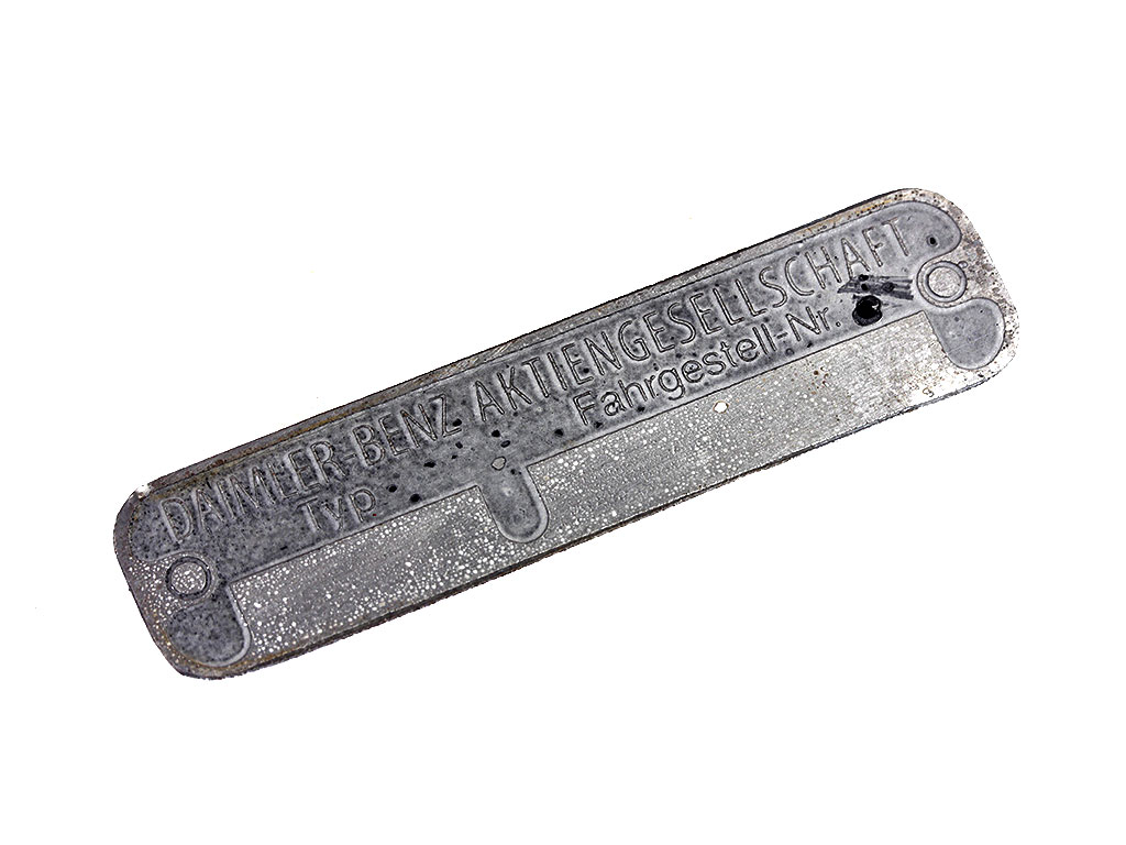 Табличка DAIMLER-BENZ AKTIENGESELLSCHAFT для машин Mersedes Benz. Германия, копия. Состаренный вид.