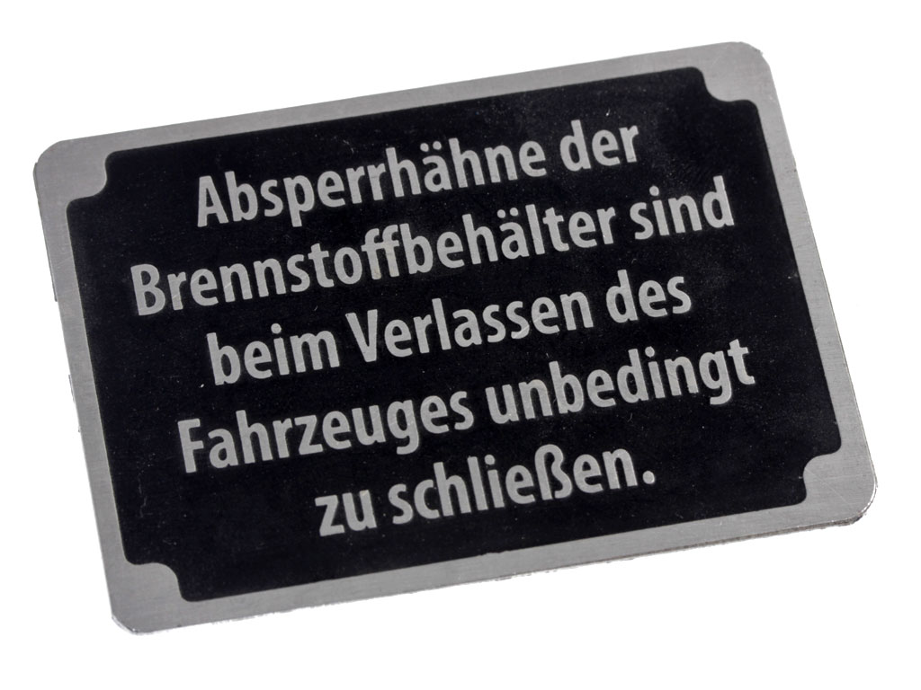 Табличка Absperrhahne der Brennstoffbehalter sind beim Verlassen des Fahrzeuges unbedingt zu schlieben для 8-12ти тонных тягачей. Германия, копия.