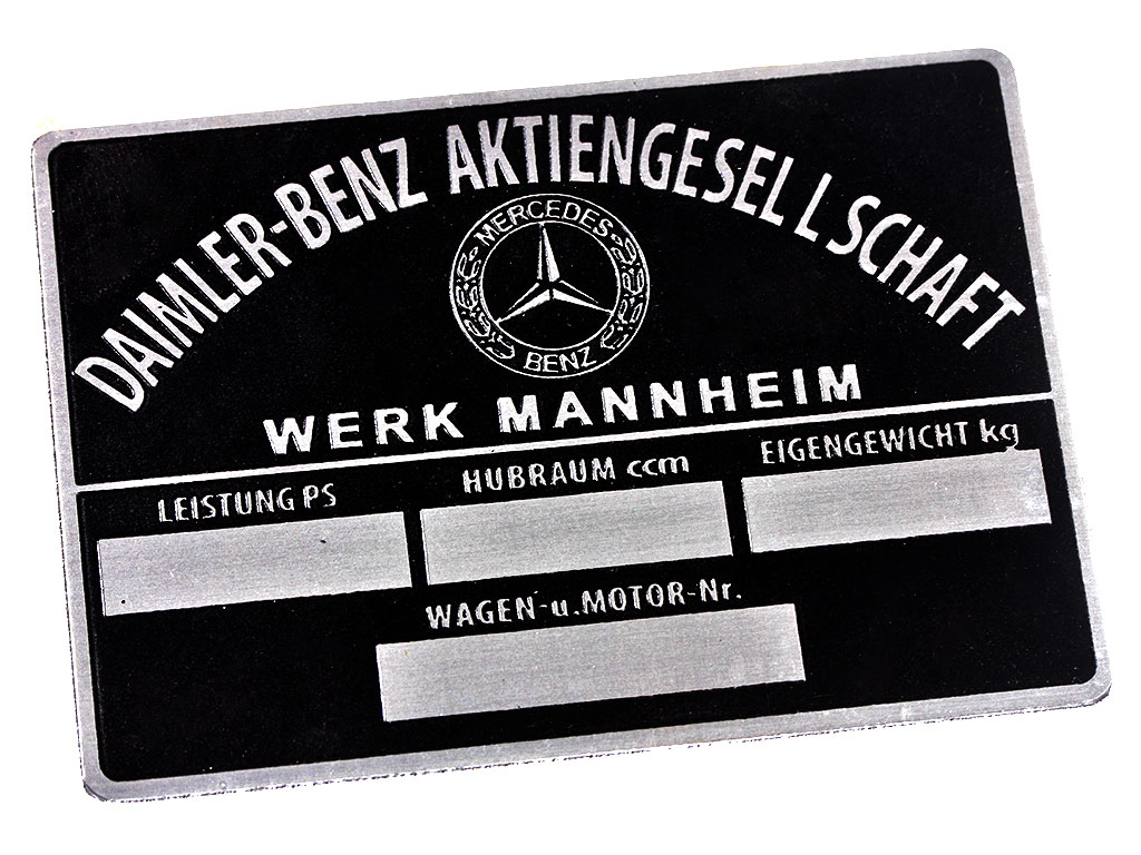 Табличка DAIMLER-BENZ AKTIENGESELLSCHAFT для машин Mersedes Benz. Германия, копия.