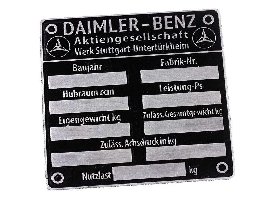 Табличка DAIMLER-BENZ AKTIENGESELLSCHAFT для машин Mersedes Benz. Германия, копия.