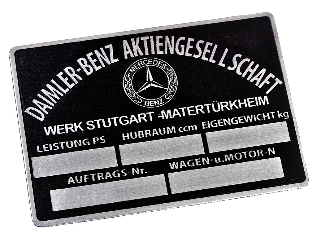 Табличка DAIMLER-BENZ AKTIENGESELLSCHAFT для машин Mersedes Benz. Германия, копия.