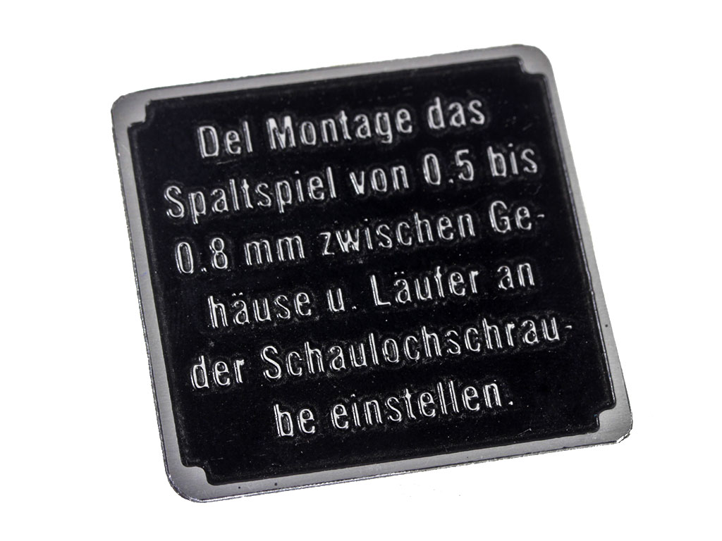 Табличка Del Montage das Spaltspiel von 0,5 bis 0,8 mm zwischen Gehause u. Laufer, на водяную помпу для Т-4. Германия, Копия