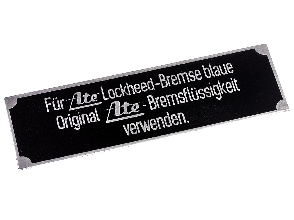 Табличка Fur Ate Lockheed-Bremse blaut Original Ate-Bremsflussigkeit verwenden для тормозов ATE, на все машины с гидравлическими тормозами. Германия, копия