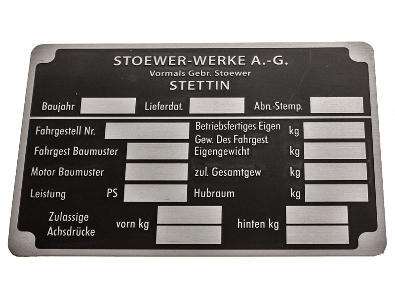 Табличка STOEWER-WERKE A.-G. STETTIN для машин вермахта, Германия, Копия