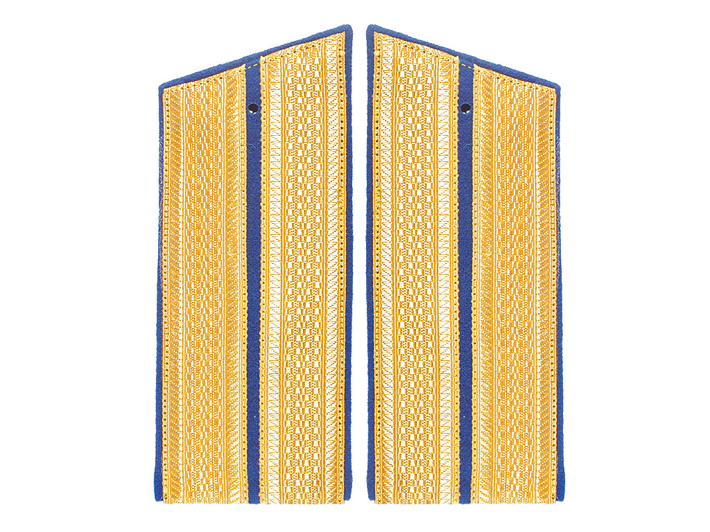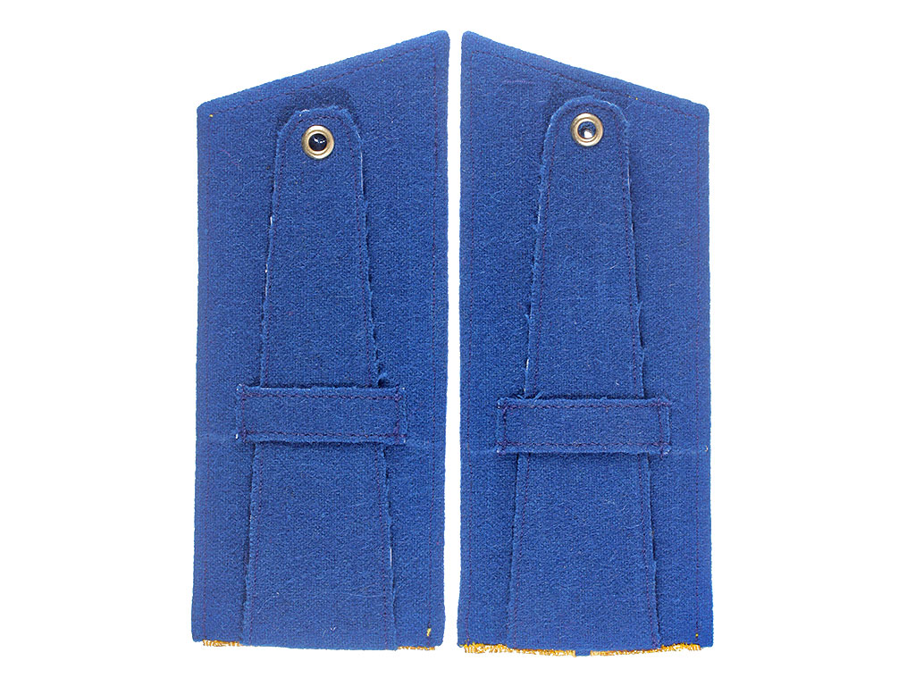 Погоны для офицерского пальто, повседневные обер-офицеров третьих и четвертых пехотных полков РИА, Желтое металлизированное поле, синий просвет, синяя основа, кант синий. Россия, копия