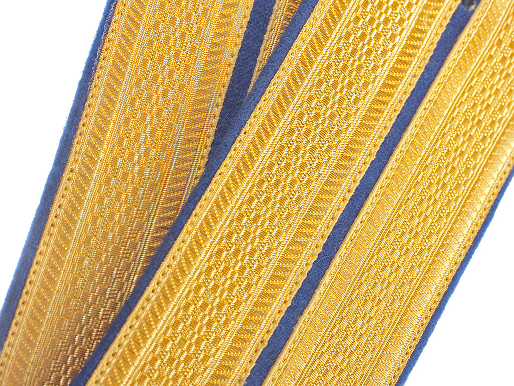 Копия высокого качества. Желтое металлизированное поле, синий просвет, синяя основа, кант синий.