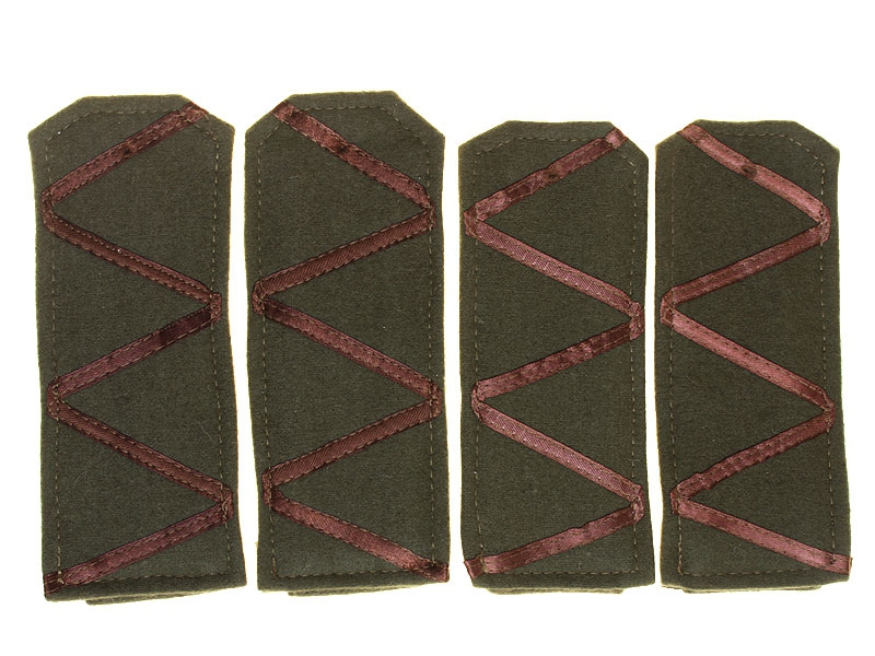Погоны офицерские походные образца 1914 года, для генеральских чинов армии и гвардии, на погонах этого типа использовались черные шифровки и звёздочки для лучшей маскировки. Большое распространение на фронте они получили с 1915-1916 года, хотя на фото попадаются не часто, т.к. фотографировались люди обычно с погонами мирного времени для большей праздничности.