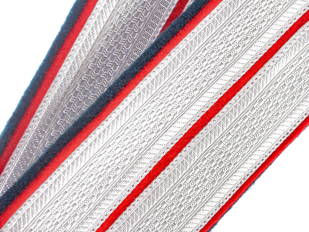 Копия высокого качества. Белое металлизированное поле, алый просвет, основа государев цвет, двойной кант государев и алый.