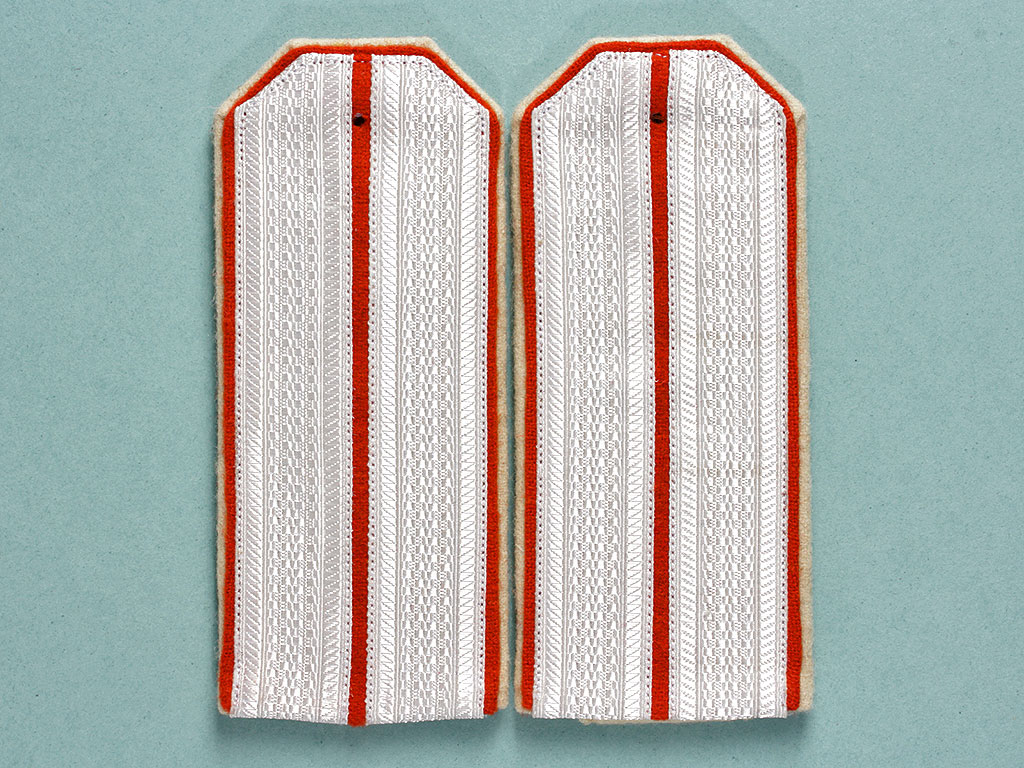 |Погоны обер-офицерские Астраханского взвода 3 Сводной сотни Лейб-Гвардии Сводно-Казачьего полка РИА. Белое металлизированное поле, оранжевый просвет, белая основа, двойной кант (белый и оранжевый). Россия, копия