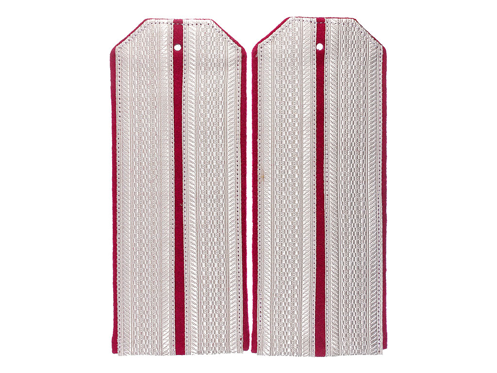 |Погоны обер-офицерские Лейб-Гвардии 2-го стрелкового полка РИА. Белое металлизированное поле, малиновый просвет, малиновая основа, кант (малиновый). Россия, копия