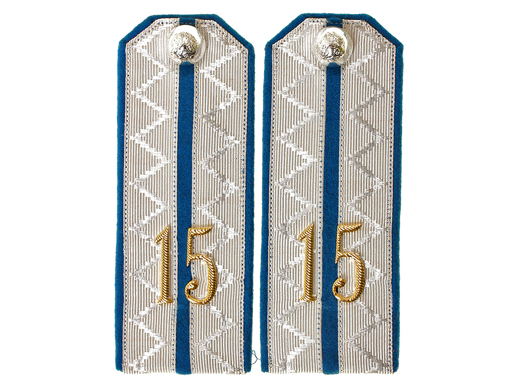 Погоны повседневные, Ротмистр, с цифрой 15, голубые, Русской Императорской армии.