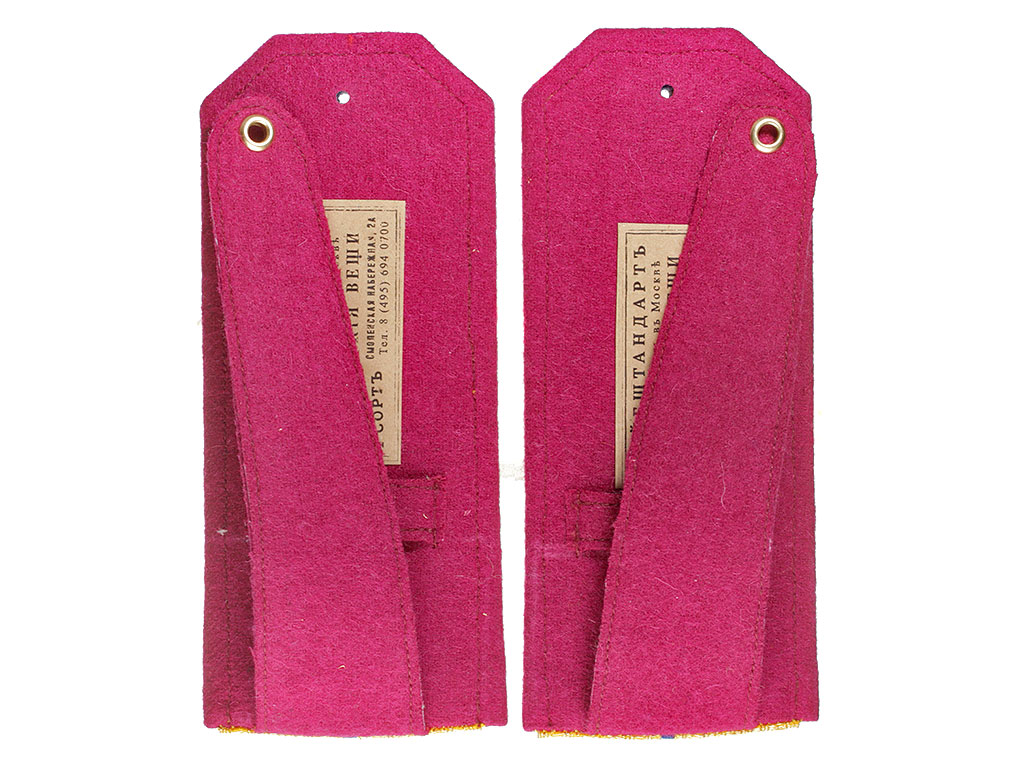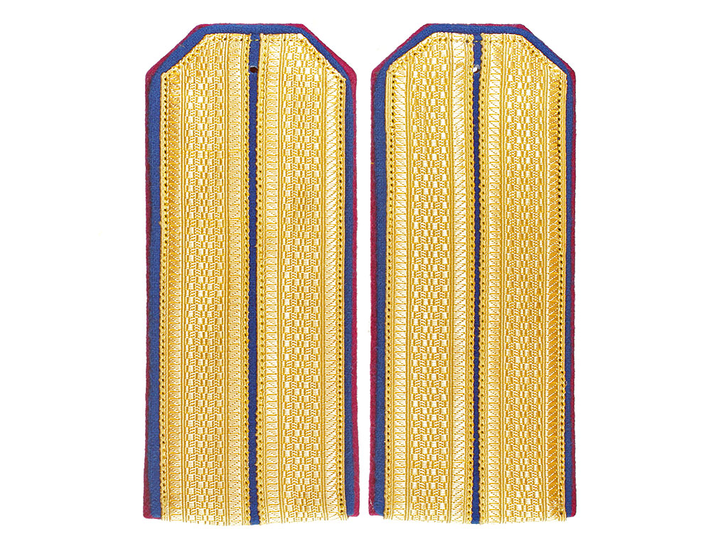 Качественная копия погон офицера - преподавателя 2-го кадетского Императора Петра Великого корпуса. Золотой галун, синее поле, алый кант.