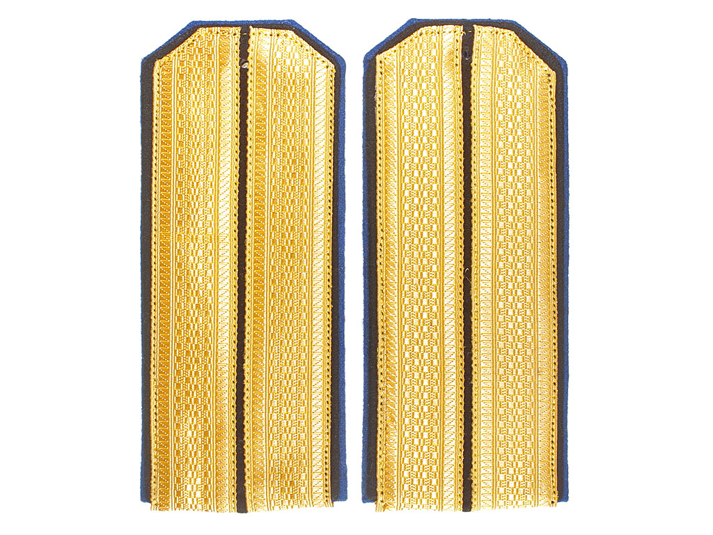 Качественная копия погон офицера - преподавателя Ярославского кадетского корпуса. Золотой галун, черное поле, синий кант.