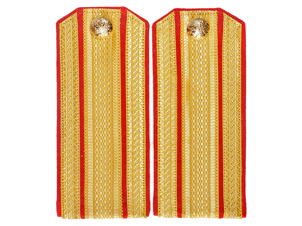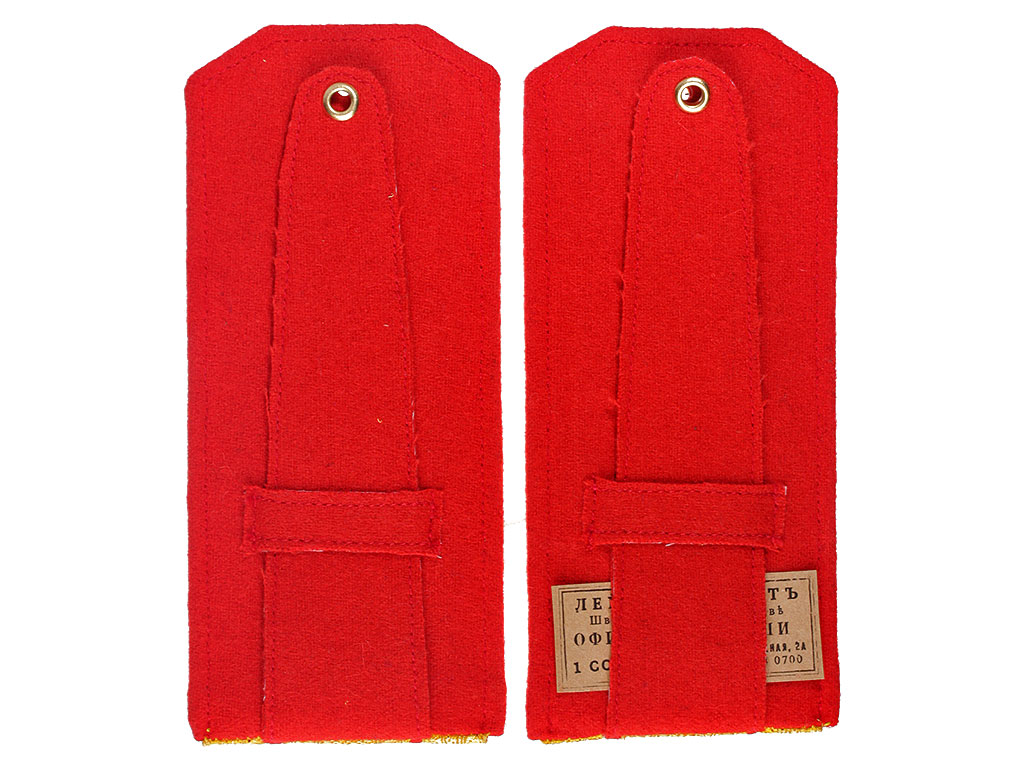 |Погоны штаб-офицерские первых двух полков армейских дивизий, гвардейской пехоты, гвардейской и армейской пешей артиллерии. Желтое металлизированное поле, алый просвет, алая основа. Россия, копия