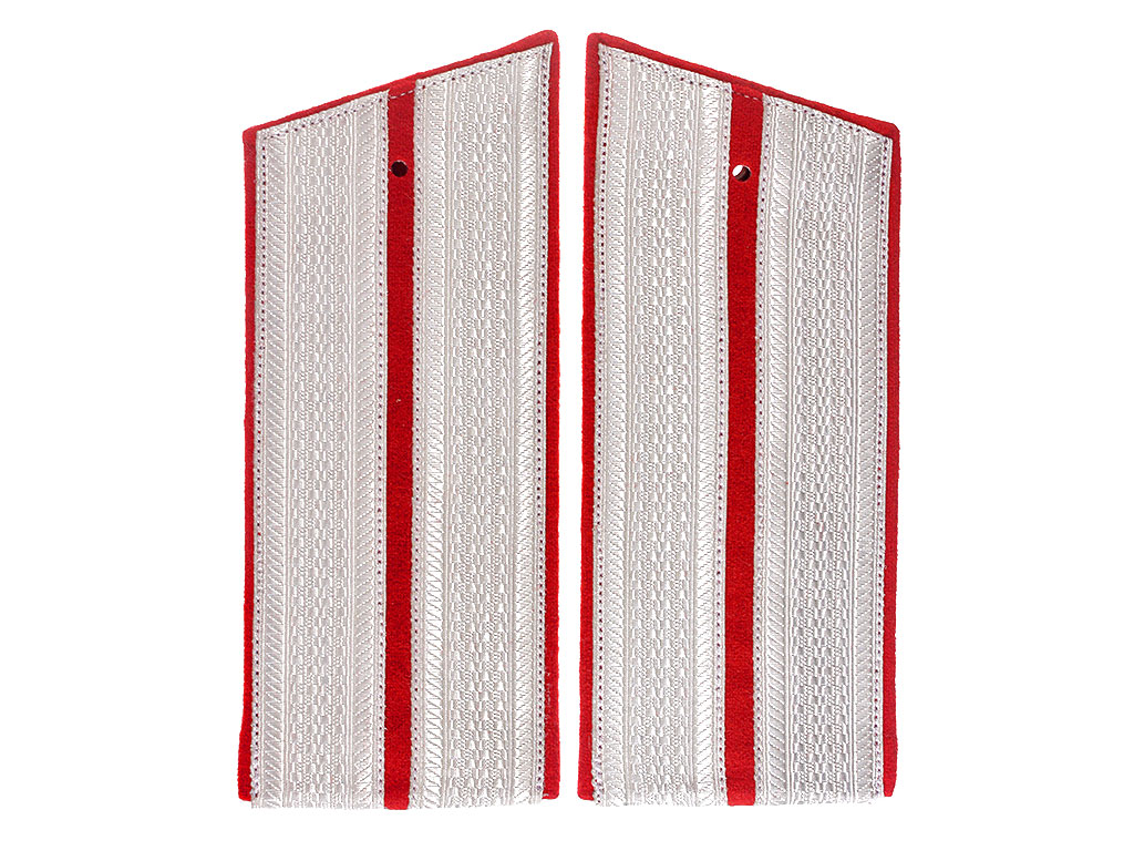 |Погоны для офицерского пальто, повседневные обер-офицеров Саперного батальона РИА. Белое металлизированное поле, алый просвет, алая основа, кант алый. Россия, копия