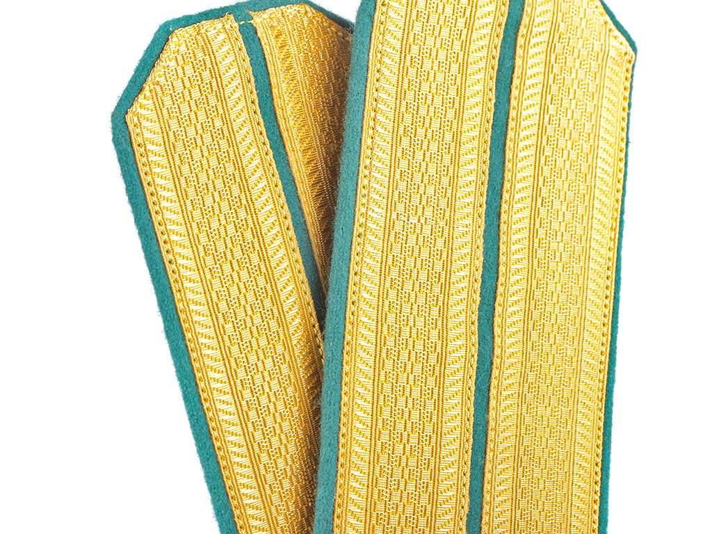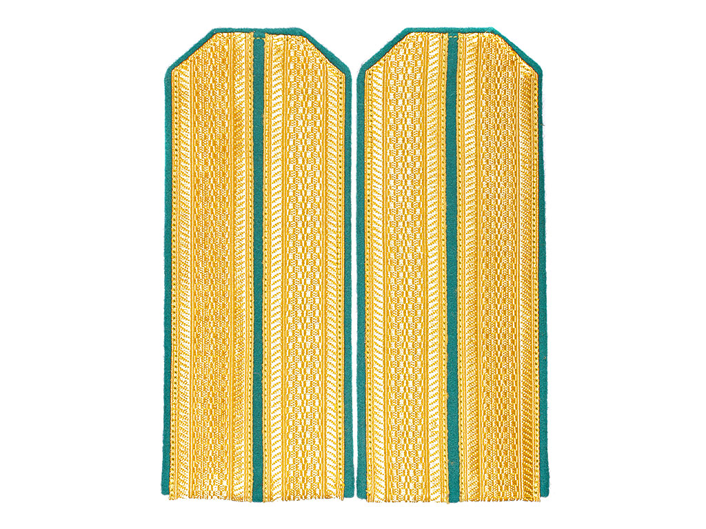 |Погоны обер-офицерские Отдельный корпус пограничной стражи РИА. Желтое металлизированное поле, зеленый просвет, зеленая основа, кант зеленый. Россия, копия