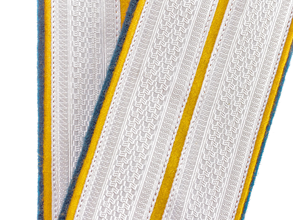Копия высокого качества. Белое металлизированное поле, желтый просвет, основа государев цвет, двойной кант государев и желтый.