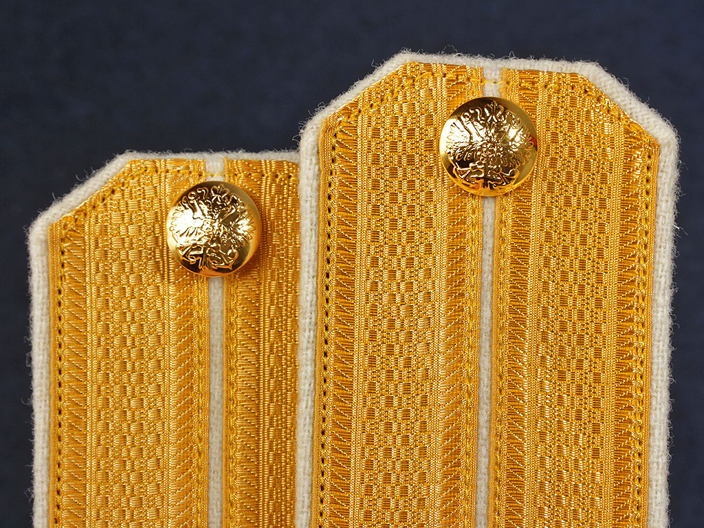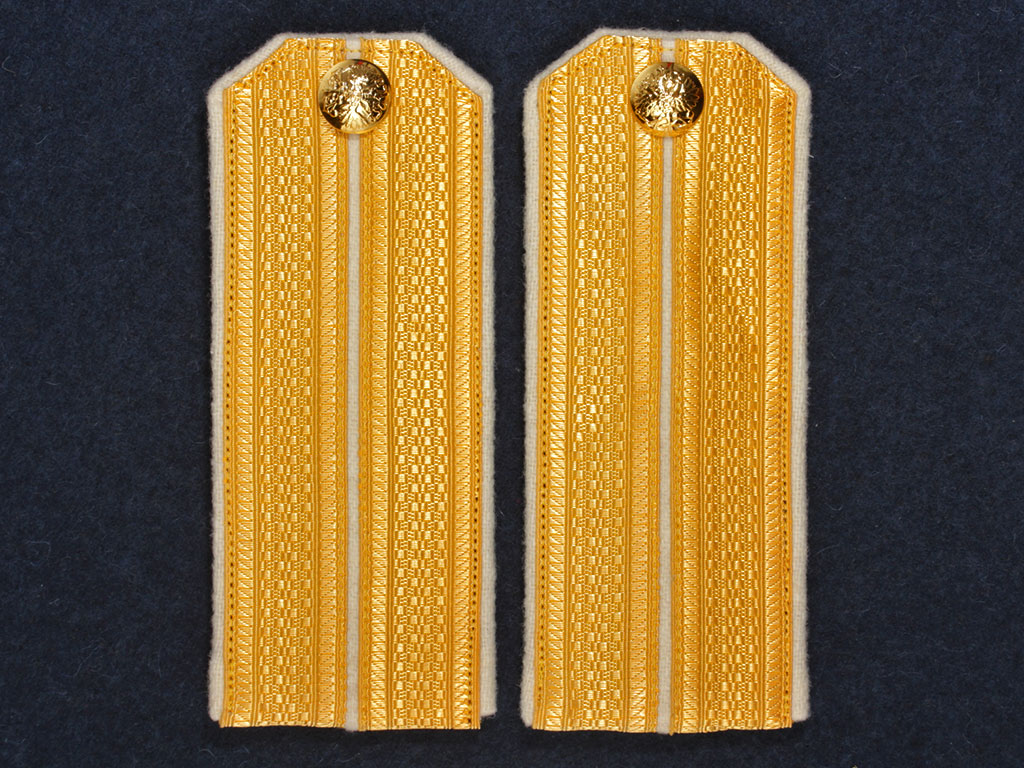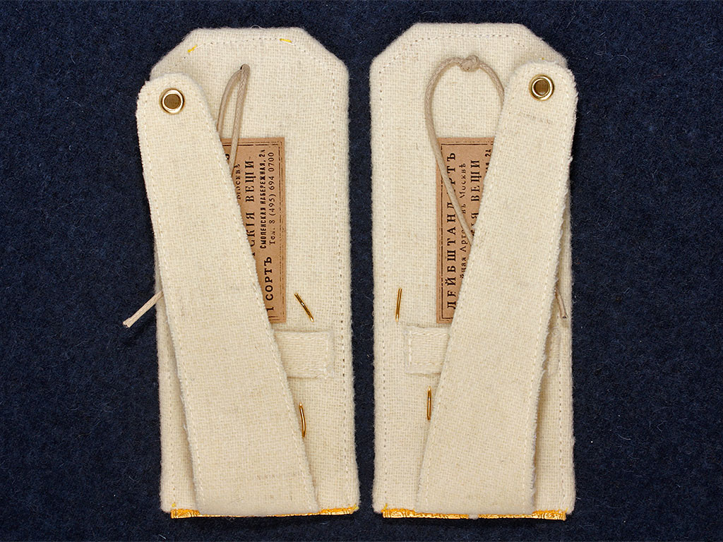 Качественная копия погон офицера - преподавателя старейшего военно-учебного заведения Российской империи: Морского кадетского корпуса. Золотой галун, белое поле, белый кант. Установлены золоченые пуговицы с изображением Государственного герба на якорях.