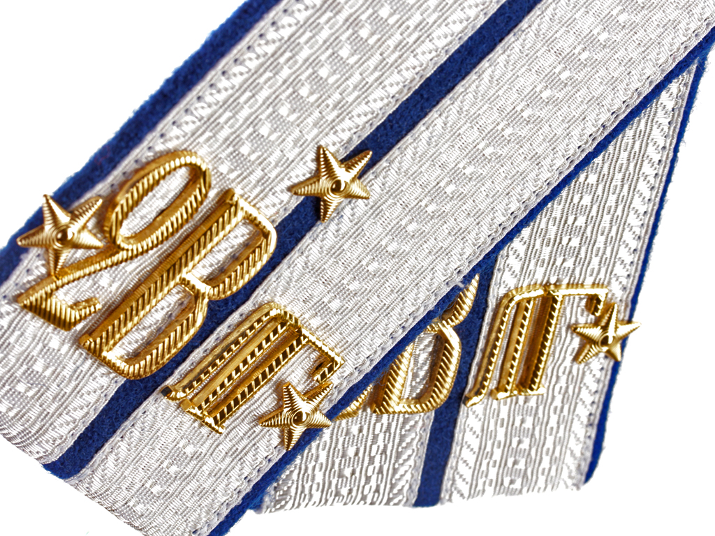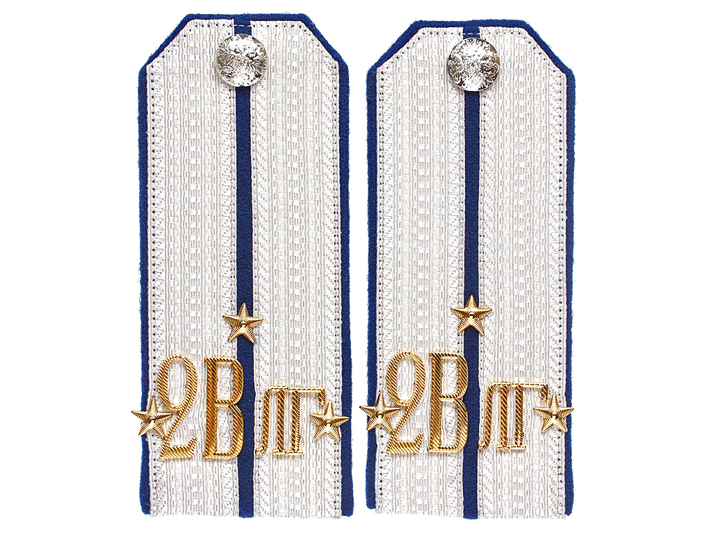 Копия высокого качества. Белое металлизированное поле, темно-синий просвет, темно-синяя основа, кант - синий. Золотые шифровки "2 Влг", золотые звездочки соответственно званию.