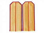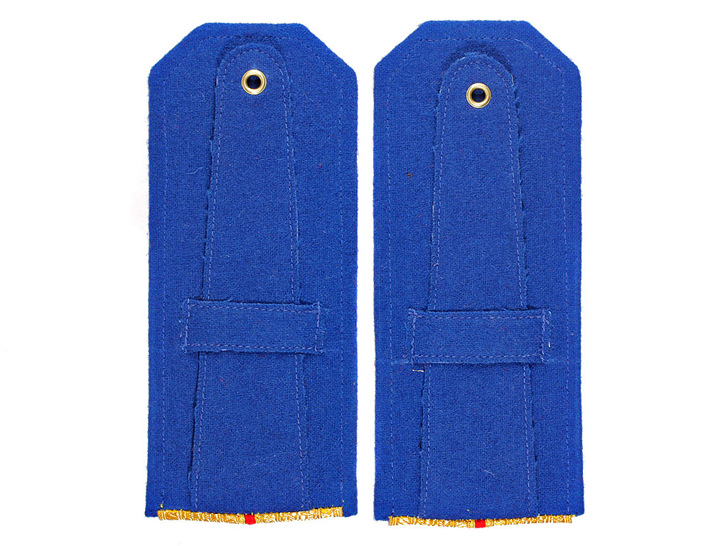 |Погоны обер-офицерские 1-го уланского Санкт-Петербургского Генерал-Фельдмаршала князя Меншикова полка РИА. Желтое металлированное поле, алый просвет, синяя основа, двойной кант (синий и алый). Россия, копия