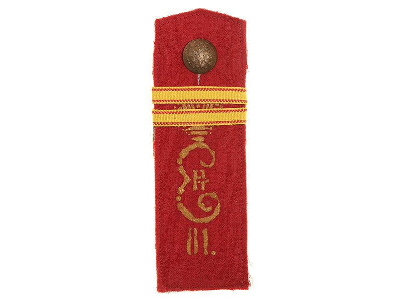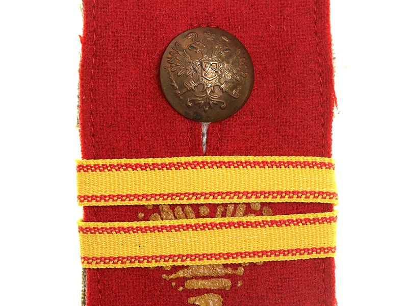 |Погоны нижних чинов первых двух полков армейских дивизий,гвардейской пехоты, гвардейской пешей артиллерии, армейской пешей артиллерии, алое поле без канта, Россия, копия