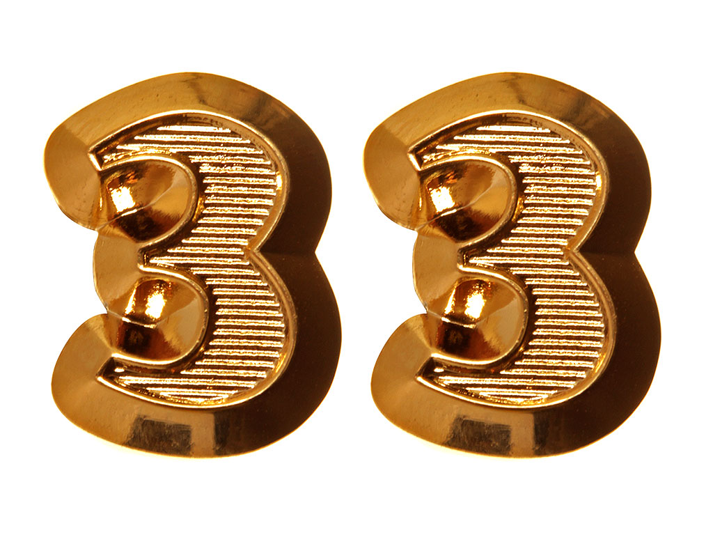 Пара позолоченных цифр "3" на погоны для унтер-офицеров, Германия, Копия