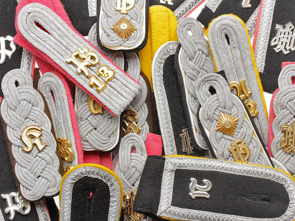 Серебристые буквы G носили чины унтер-офицерских званий, а золотистые - младшие и старшие офицеры.