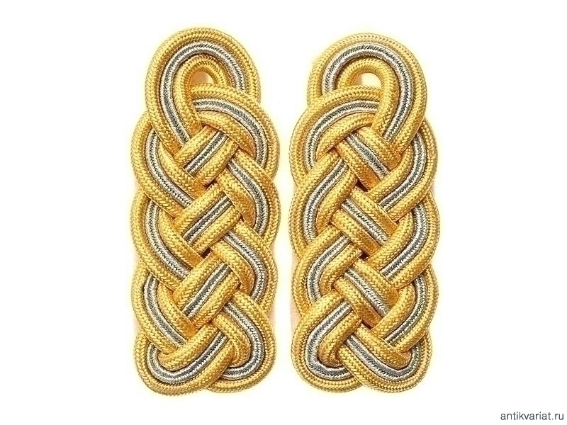 Эполеты гвардейского типа штаб-офицерские с Бахромой, серебряное тканое поле, желтый подбой. Россия, копия...