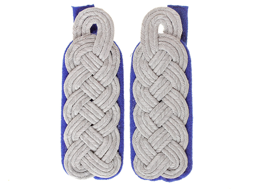 Погоны старшего офицерского состава медицинского персонала Вермахта. Плетеные металлизированные, синяя суконная основа.