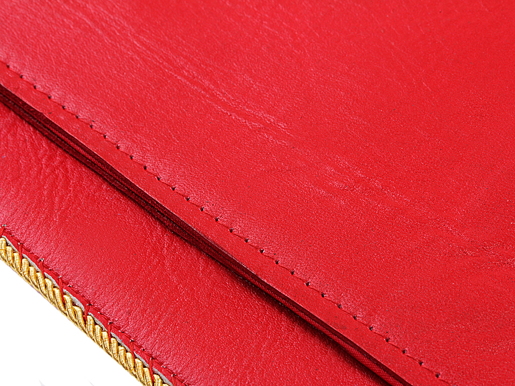 При изготовлении использована натуральная кожа, золотое шитье (9 различных видов канители), приборное сукно, шелк.